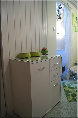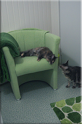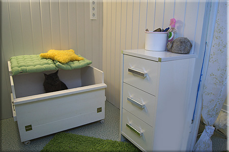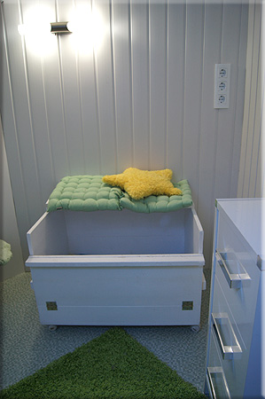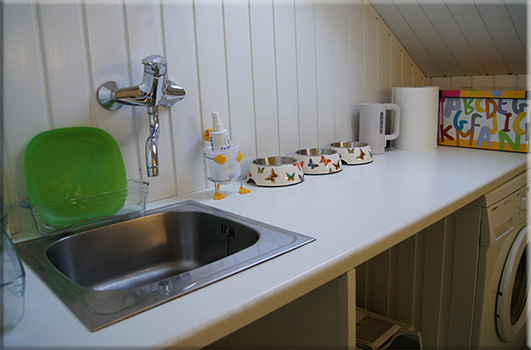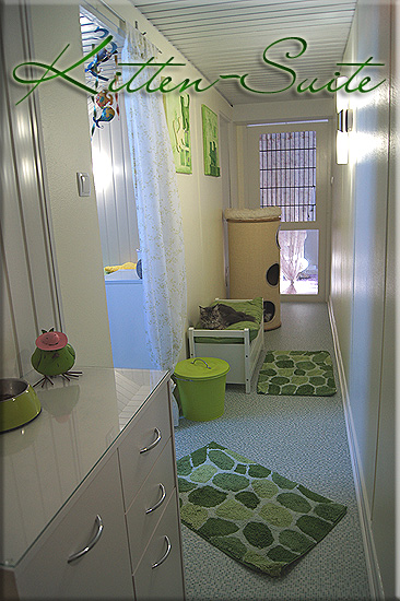 Das ist der vordere Bereich, der zurzeit durch eine Tür getrennt ist . Sobald uns die letzten Babys, die mit ihrer Mutter das nächste Zimmer bewohnen verlassen, steht wieder allen die komplette Etage zur Verfügung.